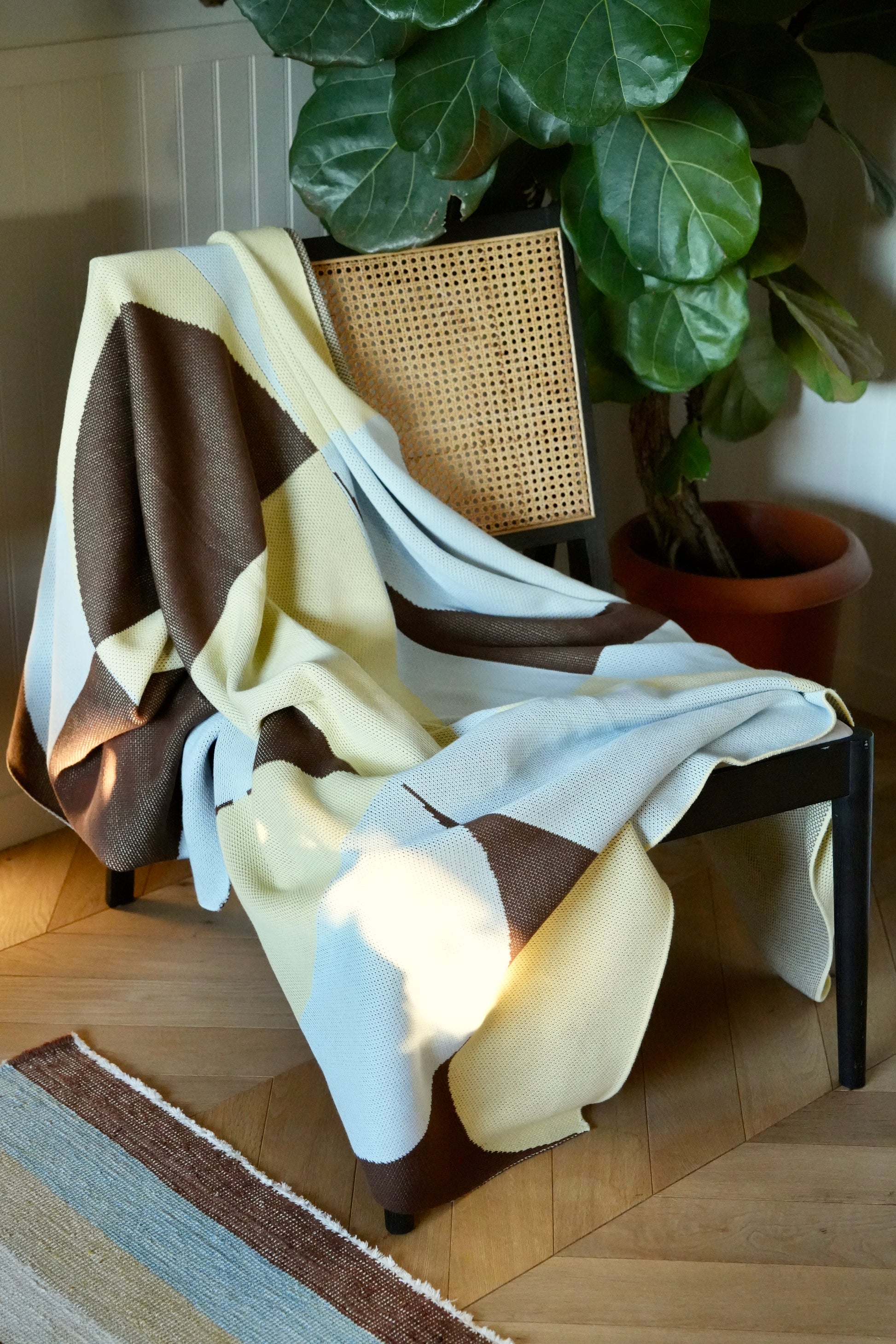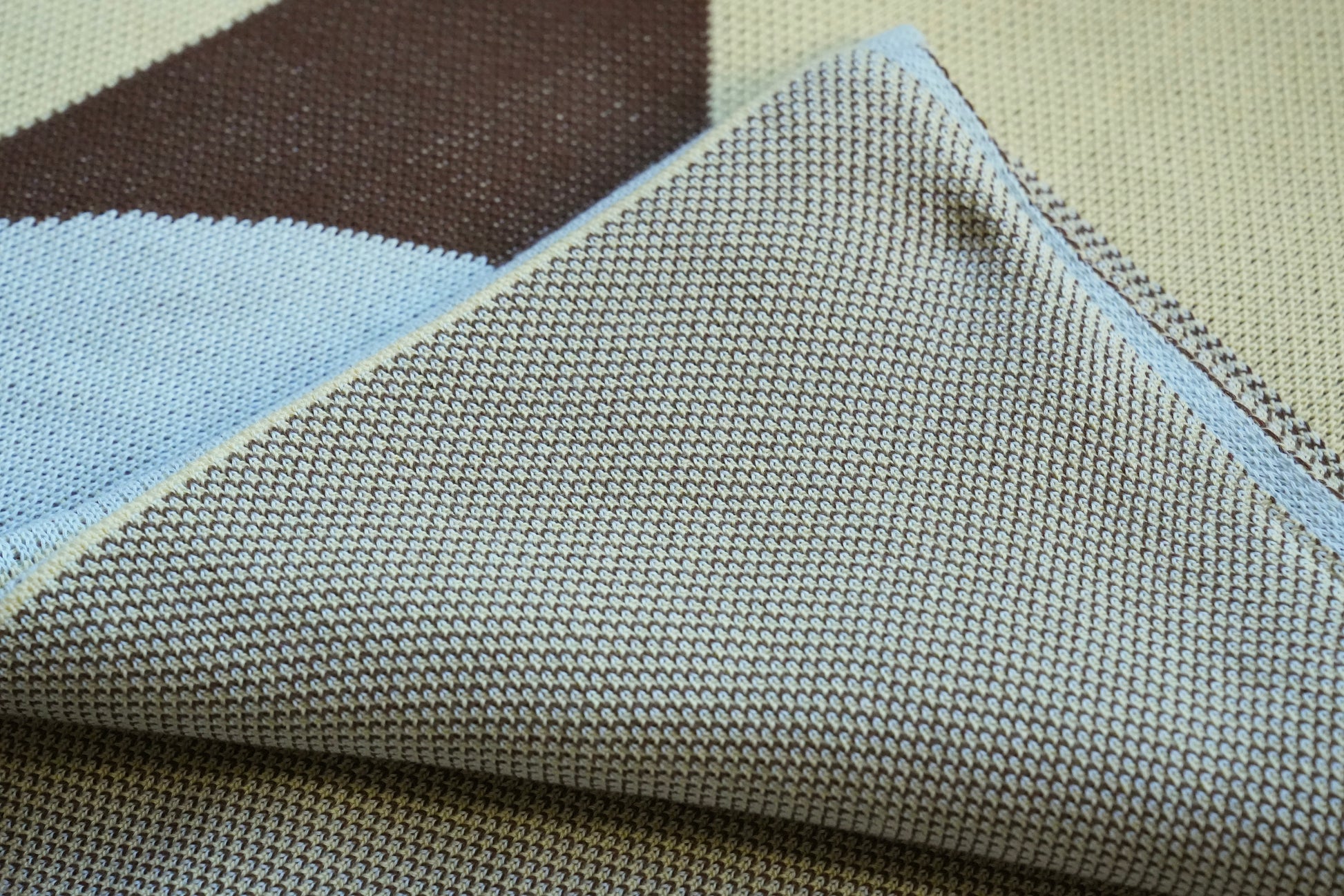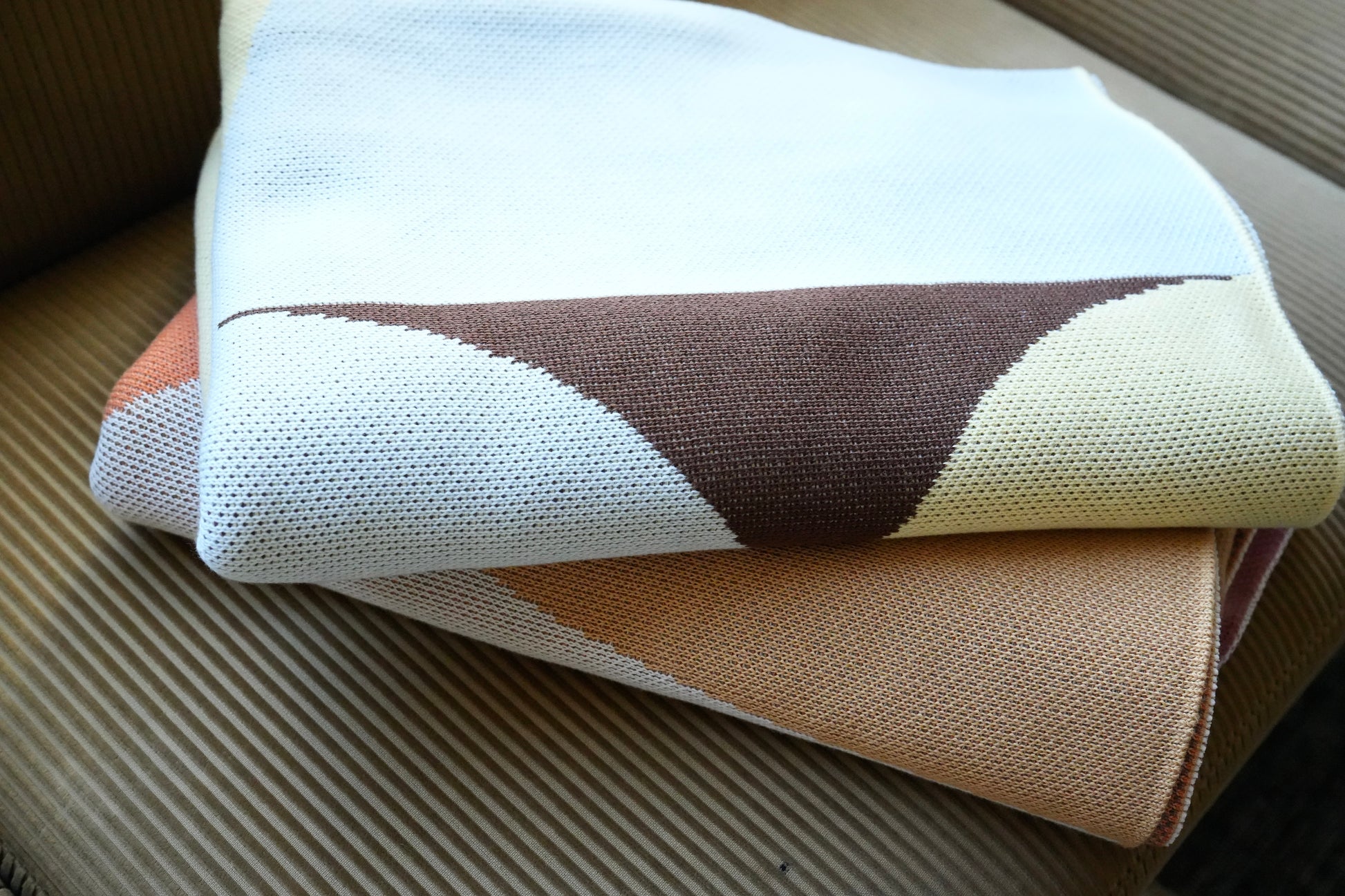 秋冬を中心に活躍する厚手のニットブランケット。