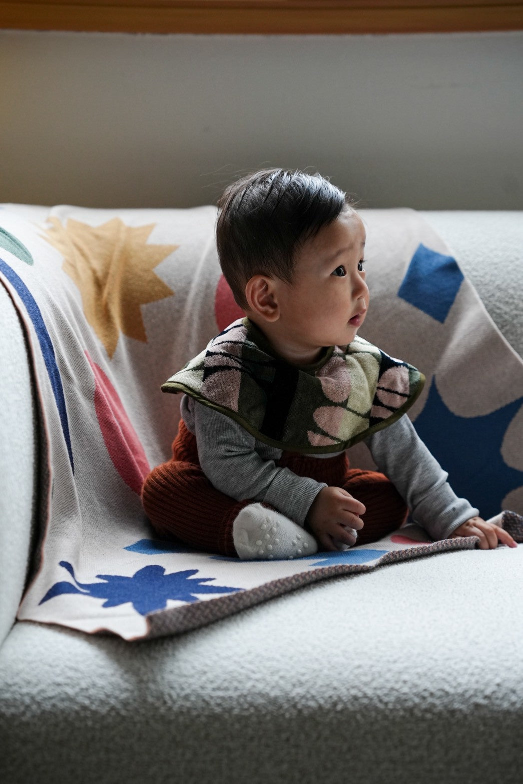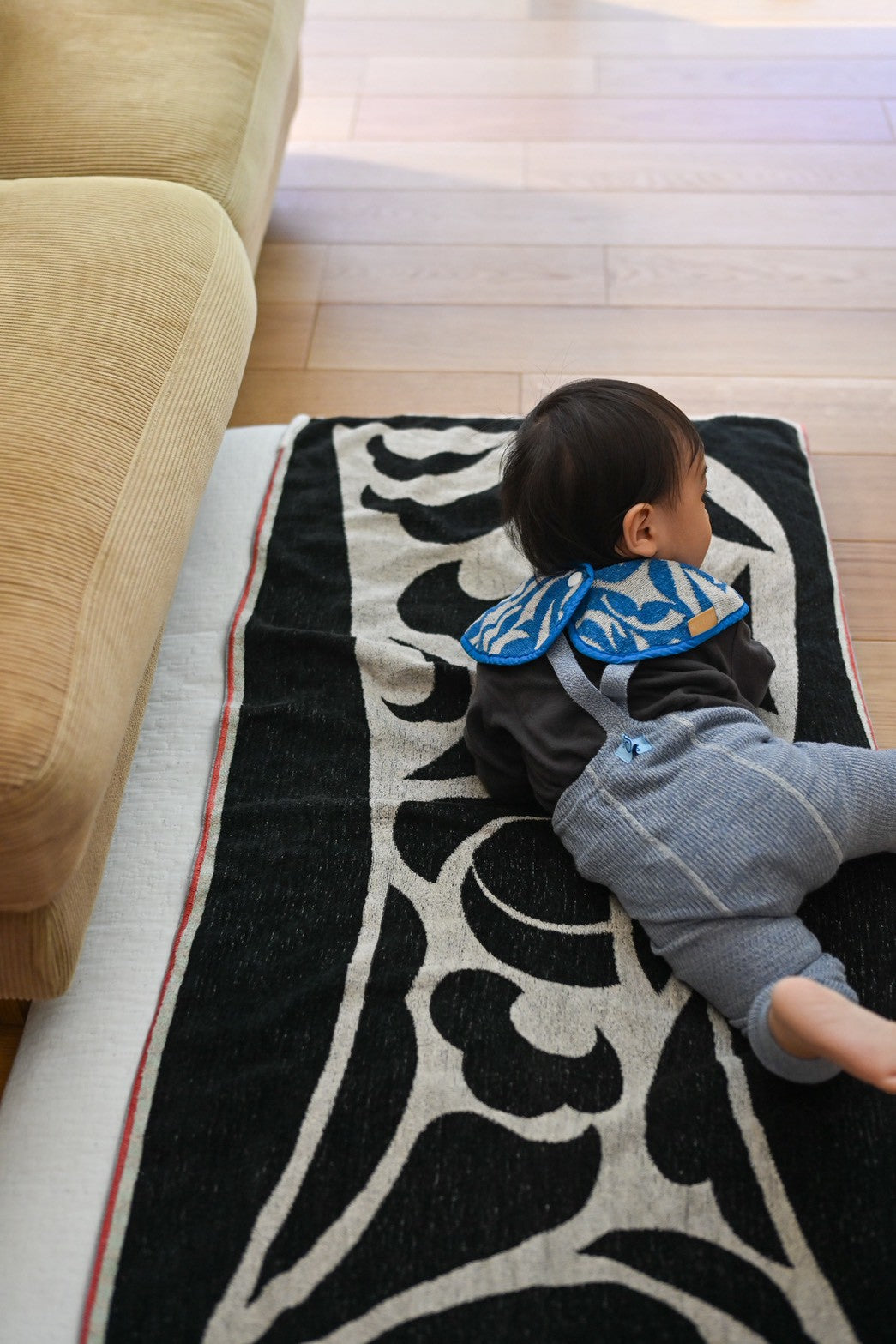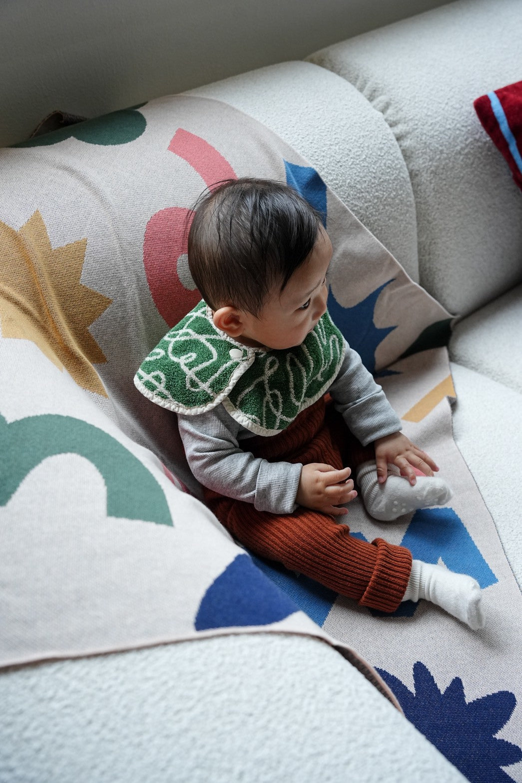 4ヶ月の息子のよだれがすごく、寝返りをしたあとなどは肩付近までよだれが垂れ服が濡れてしまうことが多かったのですが、円状のスタイなのでカバーしてくれる範囲が広くて良いです。また、円状なので前が濡れてしまった場合は前後を変えることができ、スタイを変える回数が減りました。また、デザインもめちゃくちゃオシャレで良いです✨