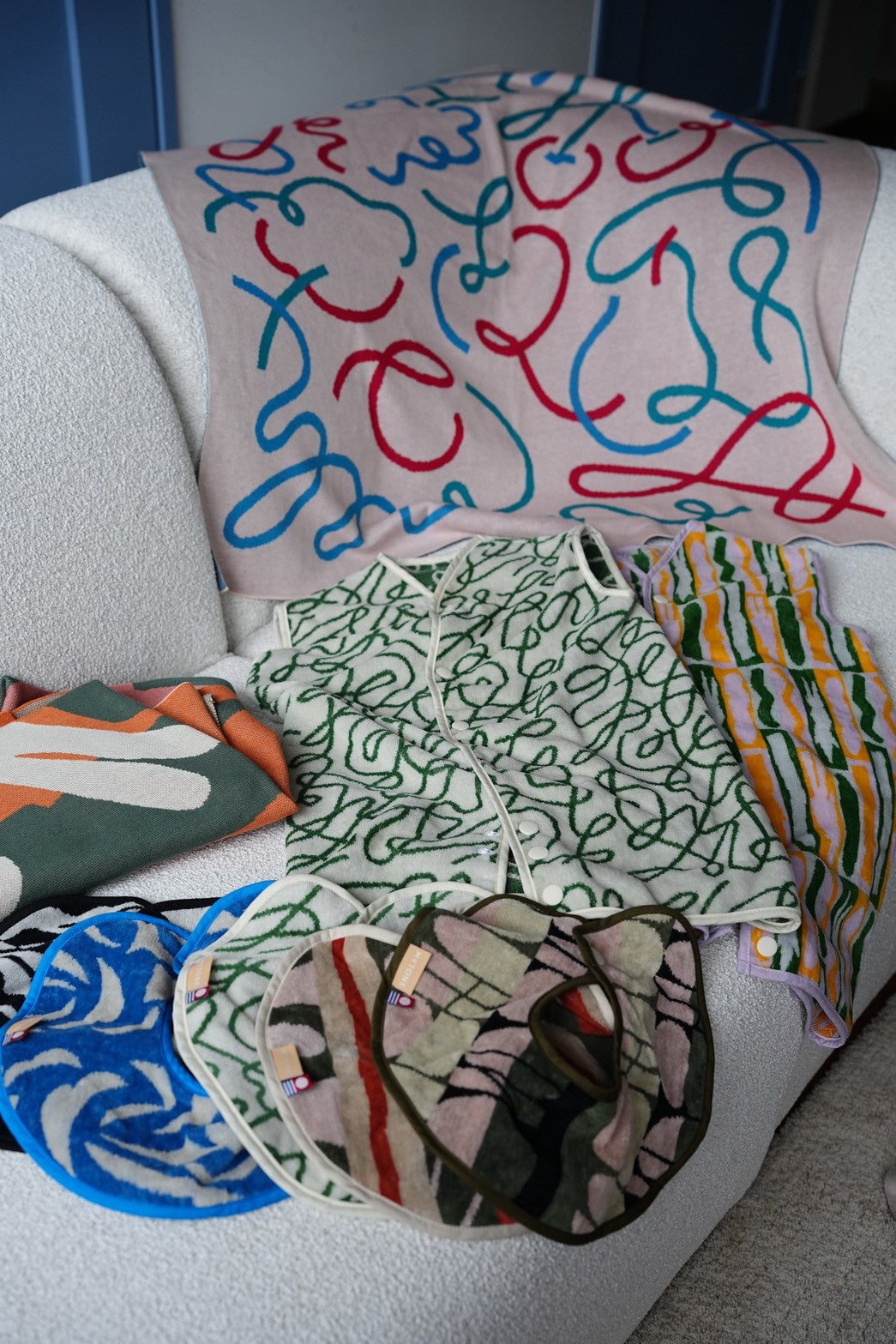 そんな生活の中でゆっくりと変化していく気持ちや空気の流れを、様々にゆらぐ曲線で表現しました。