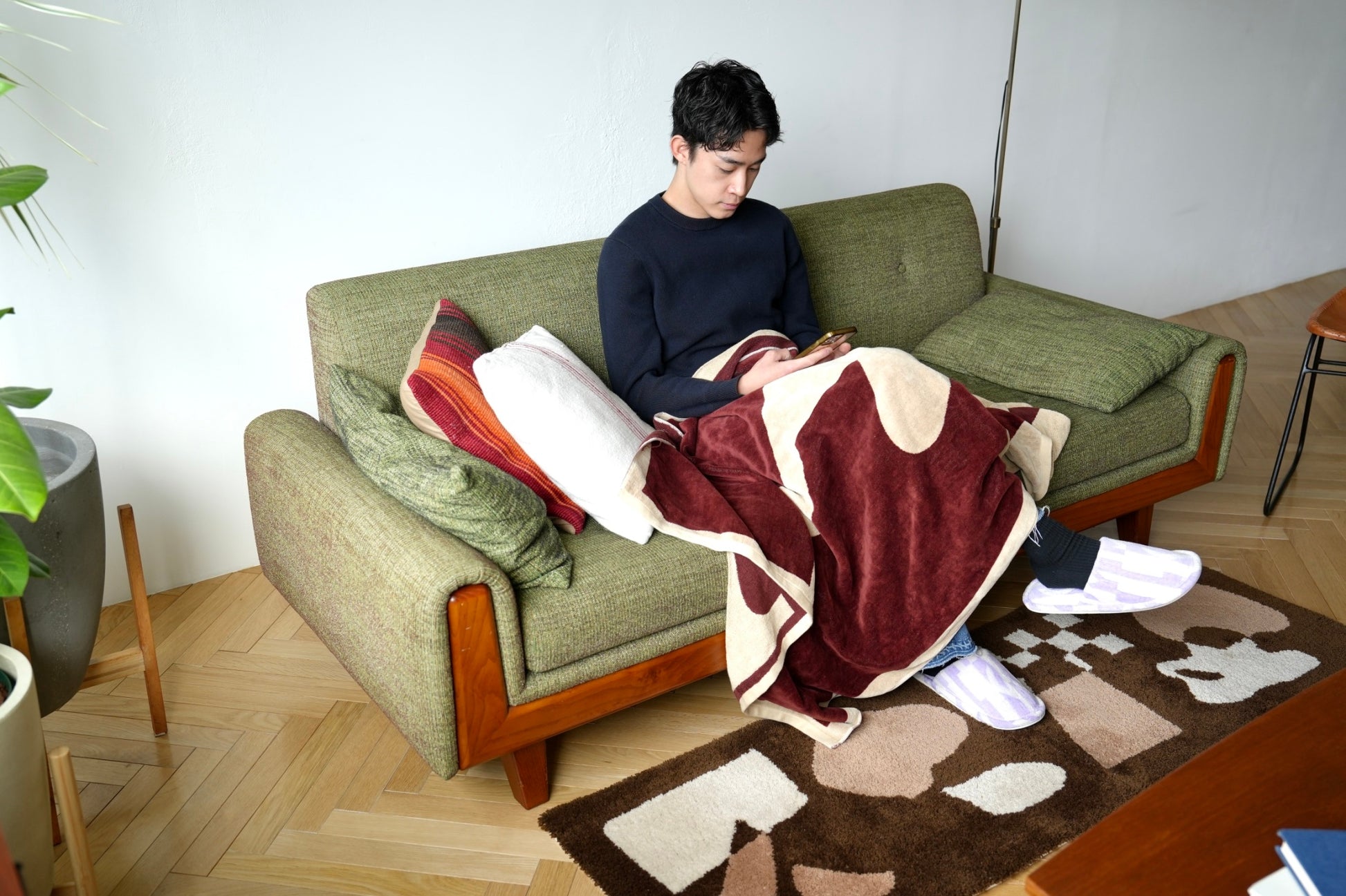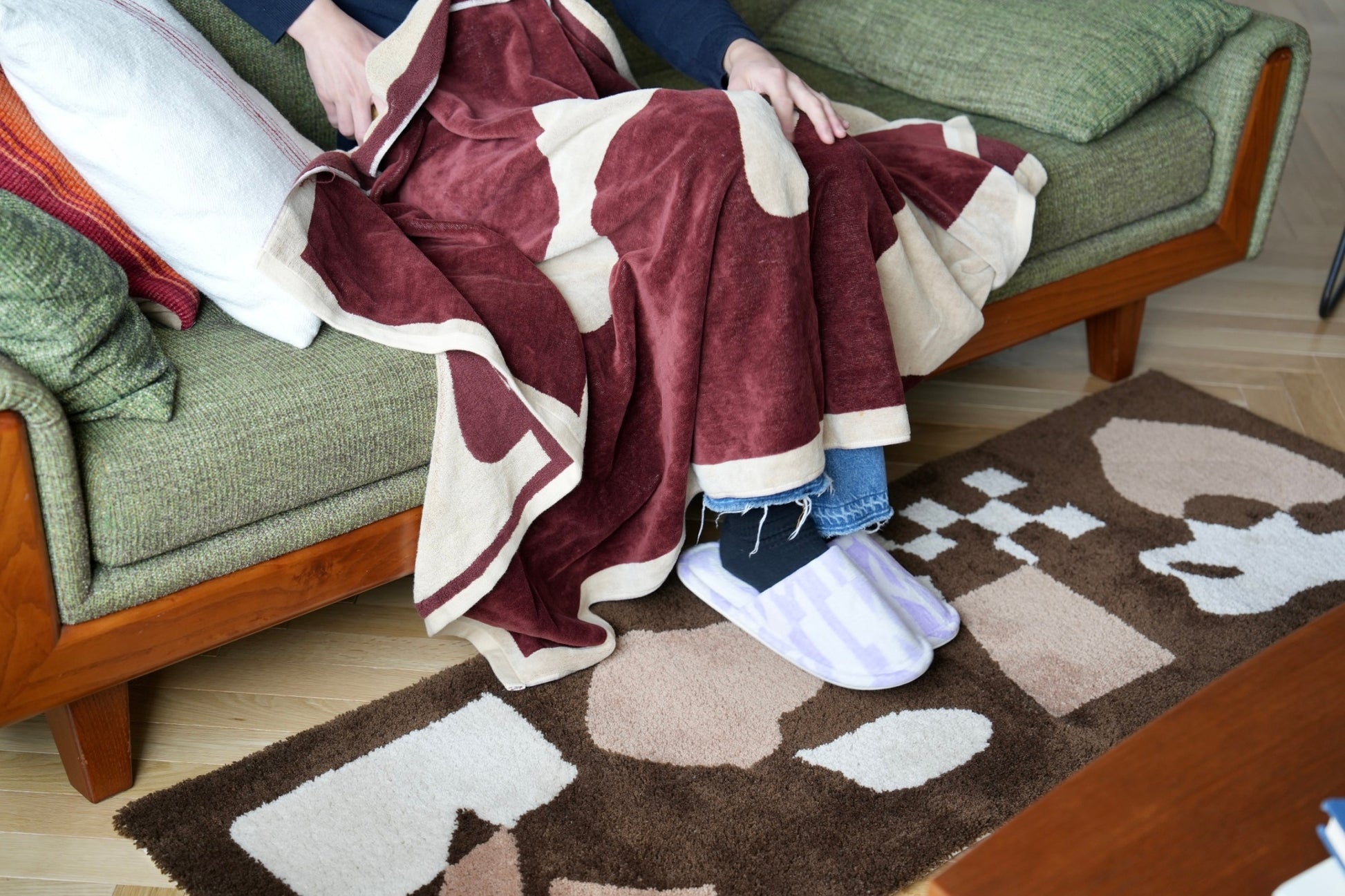 ふんわりと柔らかく、温かな肌触りのラグは、キッチンに立つ時間の疲れを和らげてくれます。